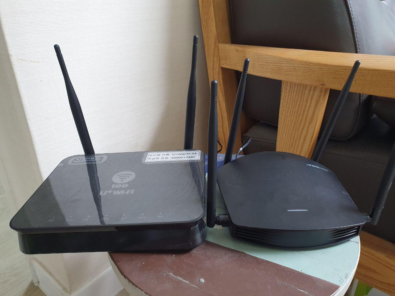 U+의 안테나 두개짜리 공유기입니다.