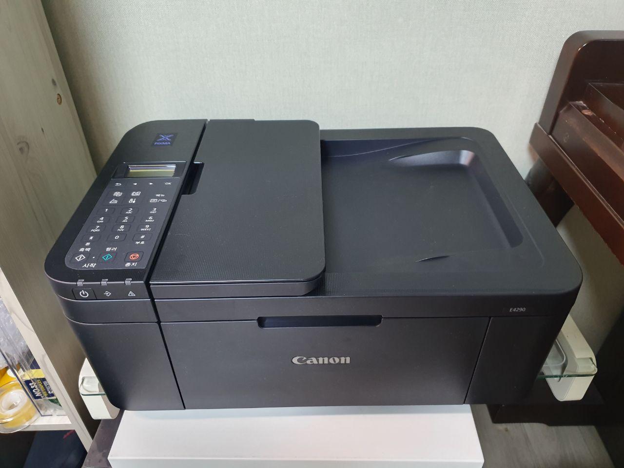 캐논 E4290은 프린터 외에 스캔, 팩스, 복사를 모두 지원하는 제품이다.